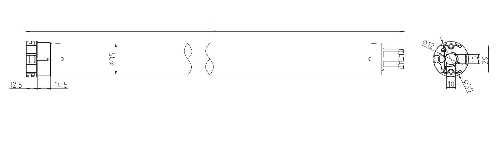 - Buismotor diameter van 35 mm met 40 mm adapters of buismotor diameter van 45 mm met 60 mm adapters.