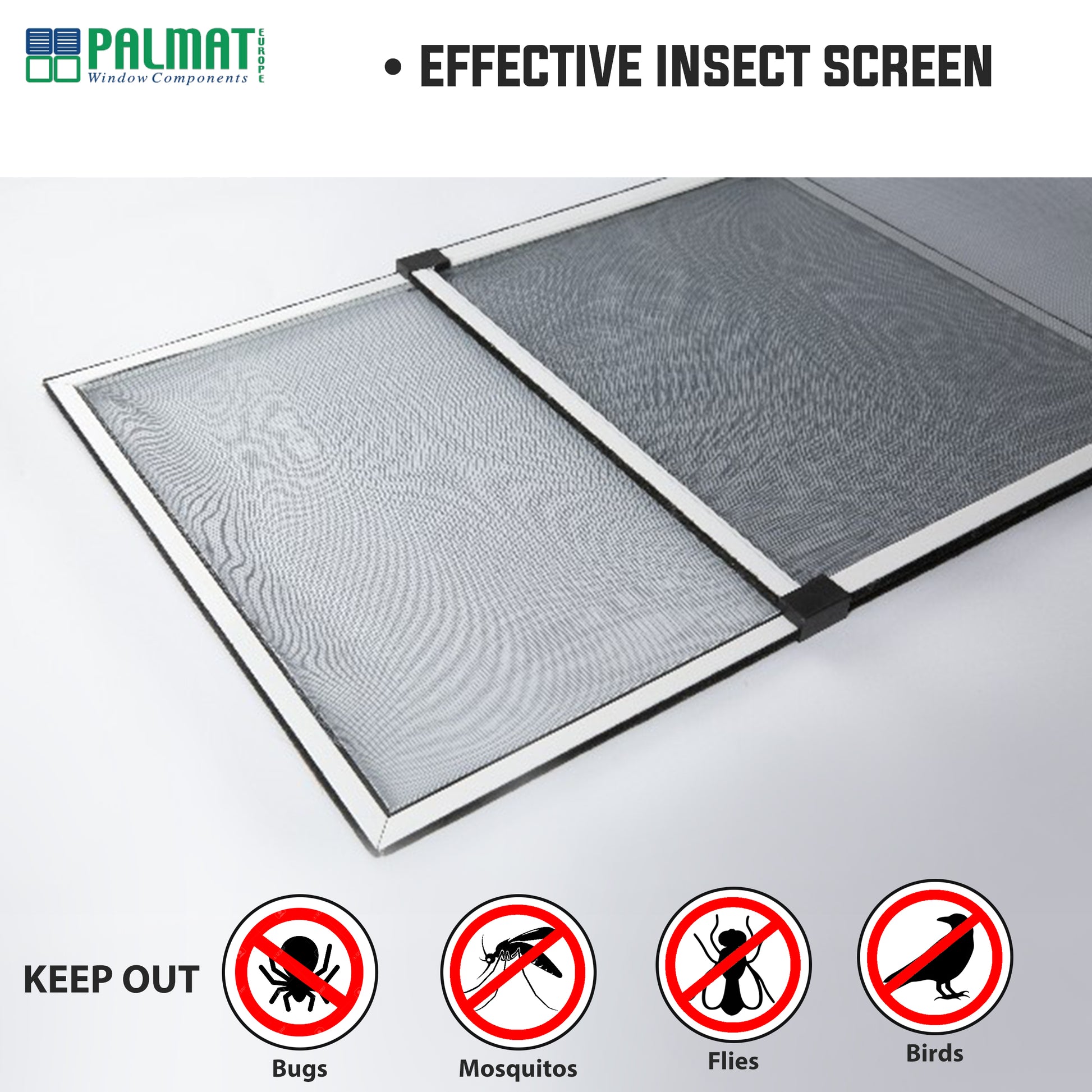 PALMAT Fly Screen Easy Slide Insect Net for Windows with Roller Shutter Guides 75 x 50cm up to 142cm